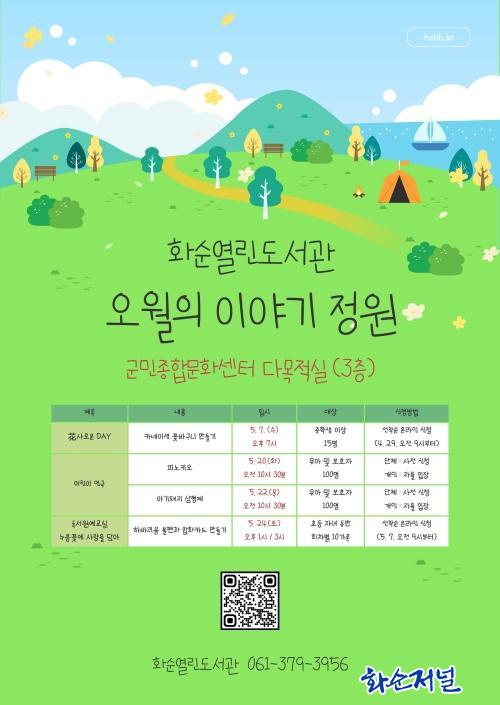 5¿ù 24ÀÏ(Åä)¿¡´Â ¿ÀÈÄ 1½Ã ¡¤ 3½Ã µÎ Â÷·Ê¿¡ °ÉÃÄ ¡®µ¶¼¿ø¿¹±³½Ç : ´©¸§²É¿¡ »ç¶ûÀ» ´ã¾Æ¡¯ ÇÁ·Î±×·¥ÀÌ ¿î¿µµÈ´Ù. °¡Á·ÀÇ »ç¶û¿¡ °üÇÑ Ã¥À» ÀÐ°í °¡Á·µé°ú À̾߱⸦ ³ª´©¸ç ½Ä¹°Ç¥º»(ÇϹٸ®¿ò) º¼Ææ°ú ¾ÐÈ Ä«µå¸¦ ¸¸µå´Â ÀÌ ¼ö¾÷Àº ȸÂ÷º°·Î ÃʵîÇлý Àڳฦ µ¿¹ÝÇÑ 10°¡Á·(°¡Á·´ç ÃÖ´ë 4¸í)À» ¸ðÁýÇÑ´Ù.