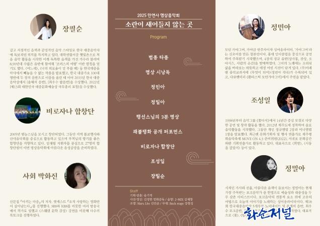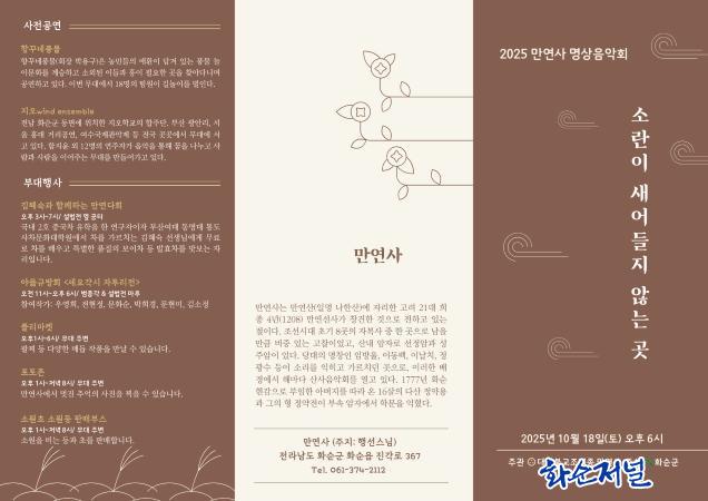 ȼø±ºÀÌ ÁÖÃÖÇÏ°í ¸¸¿¬»ç°¡ ÁÖ°üÇÏ´Â À̹ø »ê»çÀ½¾Çȸ´Â 1208³â ¼³¸³µÈ õ³â°íÂû ¸¸¿¬»çÀÇ ¿îÄ¡ Àִ dz°æÀ» ¹è°æ »ï¾Æ ¡®¼Ò¶õÀÌ »õ¾îµéÁö ¾Ê´Â °÷¡¯À̶õ ÁÖÁ¦ÀÇ ¸í»óÀ½¾Çȸ¸¦ ÅëÇØ ¸¶À½ÀÚ¸®¸¦ µé¿©´Ùº¸´Â ½Ã°£À¸·Î ±âȹµÇ¾ú´Ù.