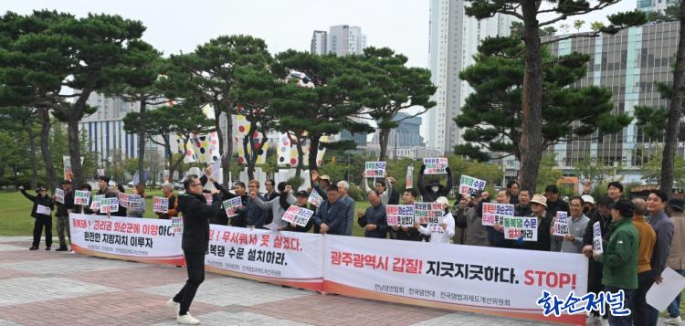 ![]() ±¤ÁÖ½Ãû°ú ±¤ÁÖ½ÃÀÇȸ ¾Õ¿¡¼ \\\'µ¿º¹´ï ¼ö¹®À» ¼³Ä¡Ç϶ó!\\\'´Â ±¸È£¸¦ ¿ÜÄ¡¸ç Áýȸ½ÃÀ§¸¦ Çϰí ÀÖ´Â Àü³²´ïÁֹο¬ÇÕȸ¿Í µ¿º¹´ïÀÌÁÖ¹ÎÇùȸ, ȼø±º Áö¿ª¹Îµé |
