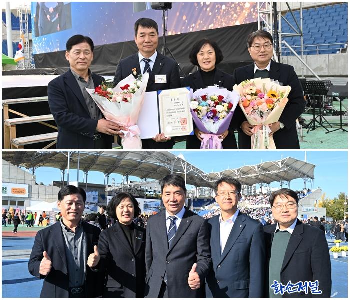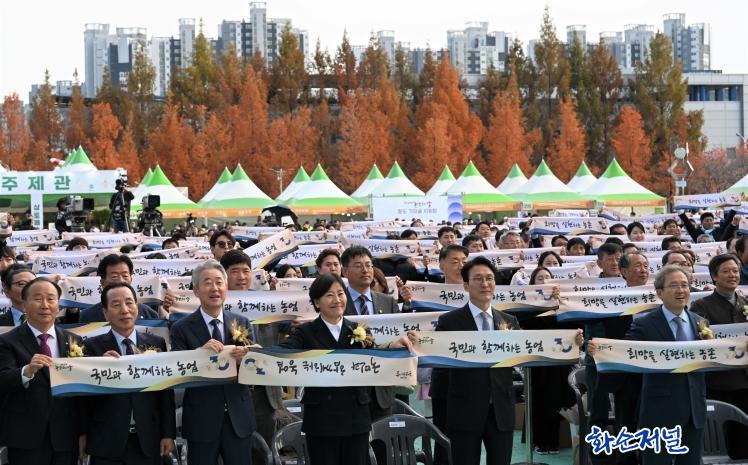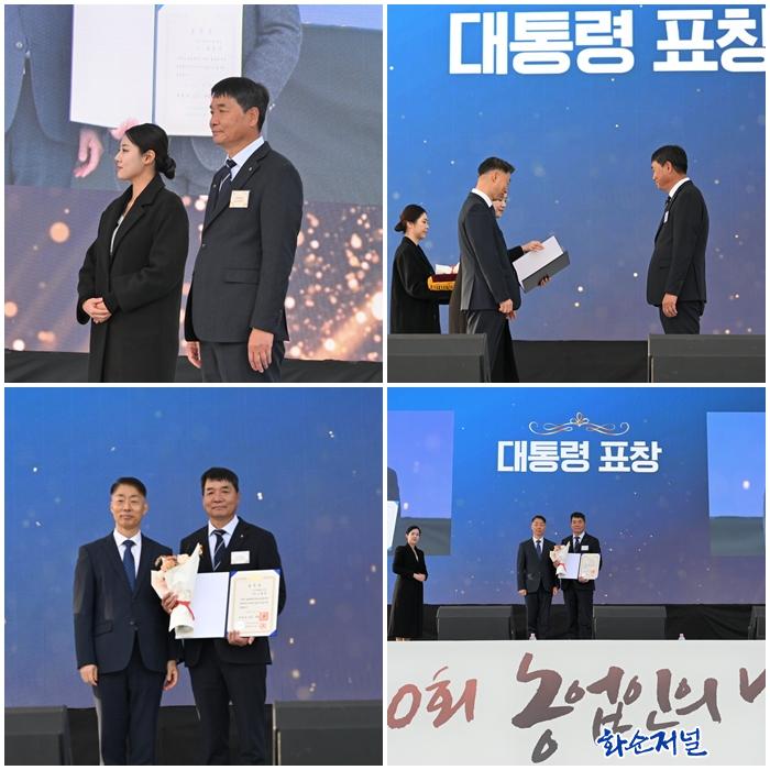 ![]() ³ëÁ¾Áø ´ÉÁÖ³óÇùÁ¶ÇÕÀåÀÌ ´ëÅë·É ǥâ ¼ö»ó ÈÄ ±â³ä»çÁøÀ» ÃÔ¿µÇϰí ÀÖ´Ù. |