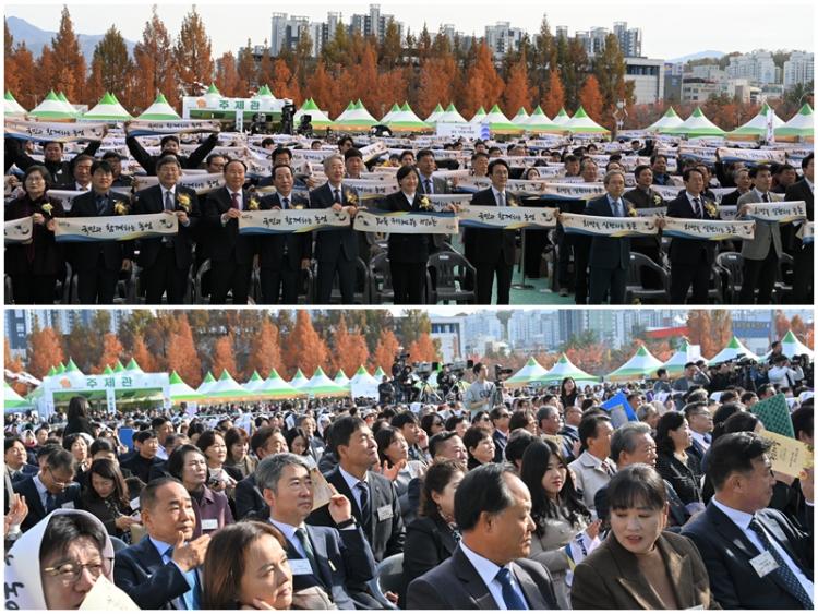 ![]() ±è¹Î¼® ±¹¹«ÃѸ®, ¼Û¹Ì·É ³ó½ÄǰºÎ Àå°ü, °È£µ¿ ³óÇùÁß¾ÓȸÀå(¿ìÃøºÎÅÍ 2, 3, 4¹øÂ° ¼øÀ¸·Î) µî Âü¼®ÀÚµéÀÌ Á¦30ȸ ³ó¾÷ÀÎÀÇ ³¯ ±â³ä½Ä¿¡¼ '±¹¹Î°ú ÇÔ²² ³ó¾÷' ½½·Î°ÇÀ» ÆîÄ¡¸ç ÆÛÆ÷¸Õ½º¸¦ Çϰí ÀÖ´Ù. |