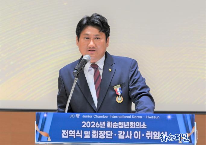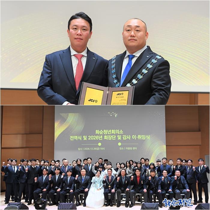 ȼøÃ»³âȸÀǼÒ(ÀÌÇÏ È¼øJC, ½ÅÀÓȸÀå ·ù¿ëÇö)°¡ 26ÀÏ È¼ø¾î¿ï¸²¼¾ÅÍ 2Ãþ ´ë°´ç¿¡¼ 2026³âµµ Àü¿ª½Ä ¹× ȸÀå´Ü, °¨»ç ÀÌ¡¤ÃëÀÓ½ÄÀ» ¼ºÈ²¸®¿¡ °³ÃÖÇß´Ù. À̳¯ ±¸ÈñÀç ȸÀåÀÌ ÀÌÀÓÇÏ°í ·ù¿ëÇö ȸÀåÀÌ ÃëÀÓÇß´Ù.