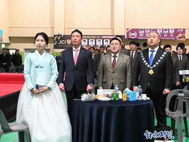 À̳¯ Àü¿ª½Ä ¹× ÀÌ¡¤ÃëÀÓ½ÄÀ» ÃàÇÏÇϱâ À§ÇØ ½ÅÁ¤ÈÆ ±¹È¸ÀÇ¿ø, ÀÓÁö¶ô¡¤·ù±âÁØ Àü³²µµÀÇ¿ø, ȼø±ºÀÇȸ ·ù¿µ±æ ºÎÀÇÀå, ·ùÁ¾¿Á ¿î¿µÀ§¿øÀå, Á¶¸í¼ø Ãѹ«À§¿øÀå, Á¶¼¼Çö »ê°ÇÀ§¿øÀå, Çϼºµ¿ ÀÇ¿ø, ±èÁö¼÷ ÀÇ¿ø, À±¿µ¹Î Àü ȼø±ºÀÇȸ ÀÇÀå, Á¶Áؼº ȼø³óÇù Á¶ÇÕÀå, Á¤ÇüÂù ȼø±ºÃ¼À°È¸Àå, ÀÓÈ£°æ Á¦11´ë ȼøJCIȸÀåÀ» ºñ·ÔÇÑ Áö¿ª ±â°ü¡¤»çȸ´ÜüÀå°ú JCI Àü³²Áö±¸ ¹× Ư¿ìȸÀå´Ü, ÀڸŠJCI °ü°èÀÚ µîÀÌ Âü¼®Çß´Ù.
