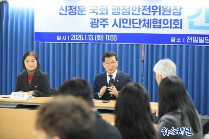 ½Å À§¿øÀåÀº °£´ãȸ¿¡¼ ±¤ÁÖ¡¤Àü³² ÅëÇÕ ÃßÁø ¹è°æ°ú ½Ã¡¤µµ ºÐ¸®·Î ÀÎÇÑ ÇàÁ¤¡¤ÀçÁ¤Àû ºñÈ¿À², Áö¿ª °£ °¥µî ¹®Á¦¸¦ ¼³¸íÇϰí, ÅëÇÕ ÃßÁø °úÁ¤¿¡¼ÀÇ ÀýÂ÷Àû Á¤´ç¼º È®º¸, ÇàÁ¤ ¸íĪ, ÀÚÄ¡±Ç¡¤ÀçÁ¤±Ç È®´ë ¹æ¾È µîÀ» Áß½ÉÀ¸·Î Æø³ÐÀº ÀǰßÀ» ³ª´³´Ù.