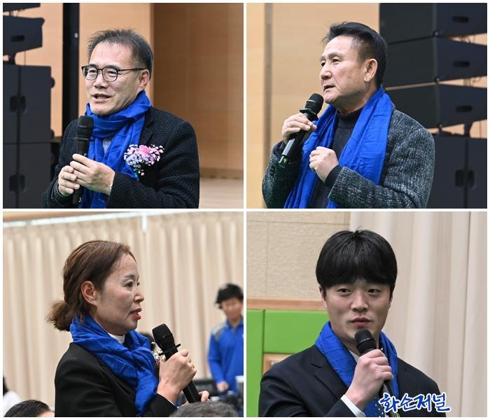 ¹ÚÂù´ë, Á¤Áø¿í, Á¤ÁØÈ£, ¹Ú±ÕÅà ±¹È¸ÀÇ¿øµµ ¿µ»ó Ãà»ç¸¦ ÅëÇØ °ûÇàÈ£ ¼ÒÀåÀÇ Ãâ°£À» ÃàÇÏÇϸç Áö¿ª ¹ßÀüÀ» ÇâÇÑ Çຸ¿¡ ÀÀ¿øÀÇ ¶æÀ» ÀüÇß´Ù. ¶ÇÇÑ ÀÌÁ¤¼± ±¤ÁÖ±¤¿ª½Ã±³À°°¨µµ ÃàÇÏ ¿µ»óÀ» º¸³» ¡°Áö¿ª°ú ÇÔ²²ÇÏ´Â ÀÇ¹Ì ÀÖ´Â Ãâ°£¡±À̶ó¸ç ÃàÇÏ ¸Þ½ÃÁö¸¦ Àü´ÞÇß´Ù.