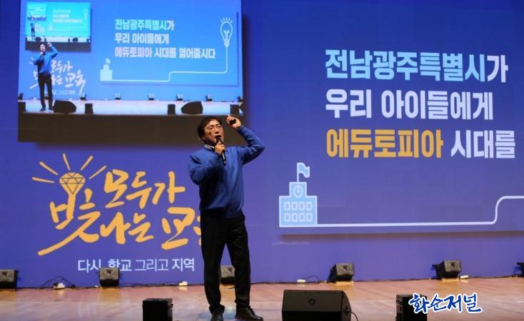 ¾Æ¿ï·¯ Àü³²°ú ±¤ÁÖ°¡ ÇϳªÀÇ ±³À°°øµ¿Ã¼·Î ³ª¾Æ°¡¾ß ÇÑ´Ù´Â Á¡µµ °Á¶µÆ´Ù. ±×´Â ¡°ÇàÁ¤ ÅëÇÕÀ» ³Ñ¾î ±³À°ÀÌ Áß½ÉÀÌ µÇ´Â ÅëÇÕÀÌ ÇÊ¿äÇÏ´Ù.¡±¸ç ¡°¾ÆÀ̵éÀÌ Áö¿ªÀÇ °æ°è¸¦ ³Ñ¾î ´õ ³ÐÀº ±âȸ¸¦ ´©¸± ¼ö Àü³²±¤ÁÖÆ¯º°½Ã ¿¡µàÅäÇÇ¾Æ ½Ã´ë¡±¸¦ ¿¾î¾ß ÇÑ´Ù°í ¿ª¼³Çß´Ù.
