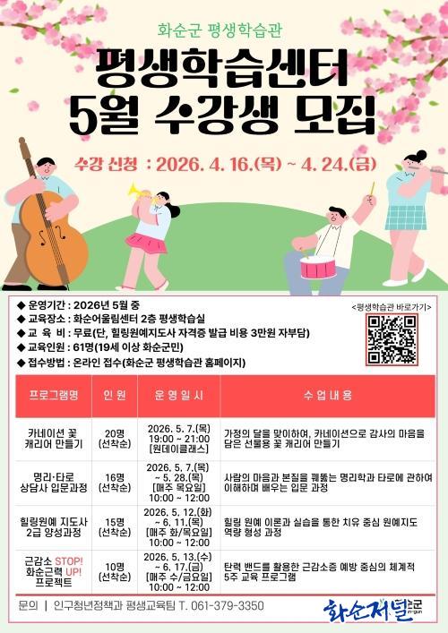 ÇÁ·Î±×·¥Àº ȼø ¾î¿ï¸²¼¾ÅÍ 2Ãþ Æò»ýÇнÀ¼¾ÅÍ¿¡¼ ÁøÇàµÇ¸ç, ¸ðÁý ÀοøÀº 19¼¼ ÀÌ»ó ȼø±º¹Î 61¸íÀÌ´Ù. ±³À°ºñ´Â ¹«·áÀ̸ç, ¡®Èú¸µ¿ø¿¹Áöµµ»ç 2±Þ ¾ç¼º°úÁ¤¡¯ÀÇ ÀÚ°ÝÁõ ¹ß±Þ ¼ö¼ö·á 3¸¸ ¿øÀº º»ÀÎ ºÎ´ãÀÌ´Ù.