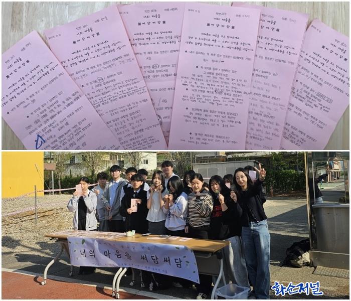 ƯÈ÷ À̹ø Çà»çÀÇ ¹é¹Ì´Â ÇлýµéÀÌ Á÷Á¢ Á¤¼º²¯ ä¿ö ³»·Á°£ 'µ¶¼ Áú¹®Áö'¿´´Ù. "³ªÀÇ ÀλýÀ» Ã¥À¸·Î ¾´´Ù¸é Á¦¸ñ°ú À帣´Â?"À̶ó´Â Áú¹®¿¡ ÇлýµéÀº "ÃʶóÇÏÁö¸¸ µû½ºÇß´ø ³ªÀÇ Àλý(ÆÇŸÁö)", "³¡³ªÁö ¾ÊÀº À̾߱â(¼ºÀå ÆÇŸÁö)", "±×¸®°í¡¤¡¤¡¤ ´õº¸±â(¿¡¼¼ÀÌ)" µî ¸¶Ä¡ ¹®ÇÐ ÀÛǰÀÇ ÇÑ ±¸Àý °°Àº ´äº¯À» Àû¾î³» °¨µ¿À» ÀھƳ´Ù. ¶ÇÇÑ "ŸÀÎÀÇ ½Ã¼±¿¡¼ ±íÀÌ ¸ôÀÔÇØ º¼ ¼ö ÀÖ´Â ½Ã°£ÀÌ Áñ°Ì´Ù."¸ç µ¶¼ÀÇ ÀÌÀ¯¸¦ ¹àÈù Çлýµµ ÀÖ¾î Çà»çÀÇ Àǹ̸¦ ´õ¿í ±í°Ô Çß´Ù.