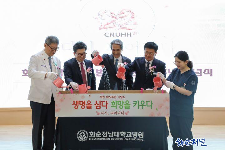 Á¤½Å Àü³²´ëÇб³º´¿øÀåÀº ¡°È¼øÀü³²´ëº´¿øÀº Áö³ 22³â°£ Áö¿ªÀ» ´ëÇ¥ÇÏ´Â ¾Ï Àü¹®º´¿øÀ¸·Î ¼ºÀåÇÏ¸ç º»¡¤ºÐ¿øÀÌ ÇϳªÀÇ °øµ¿Ã¼·Î¼ À§±â¸¦ ±Øº¹ÇؿԴÙ. ¡®´Ù½Ã, ÇǾ´Ù¡¯¶ó´Â ½½·Î°Çó·³ ½Ã·ÃÀ» µó°í ÇÑ ´Ü°è ´õ µµ¾àÇØ, Á¤¹ÐÀÇ·á ±â¹ÝÀÇ ¼¼°èÀû ¾Ï Ä¡·á Á߽ɱâ°üÀ¸·Î ¼ºÀåÇÏ±æ ±â´ëÇÑ´Ù.¡±°í Çß´Ù.