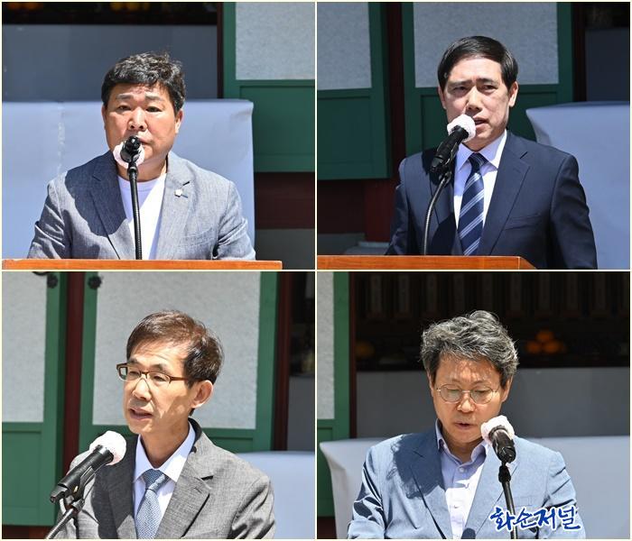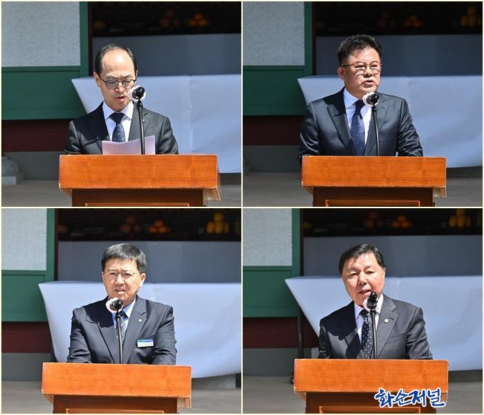 ![]() Á¶¼¼Çö ÀÇ¿ø(À§, ÁÂ), Á¤¿µÅ ºÎȸÀå(À§, ¿ì), ¹ÚÁßȯ °üÀå(¾Æ·¡, ÁÂ)ÀÌ Ãà»ç¸¦ Çϰí ÀÖ´Ù. |