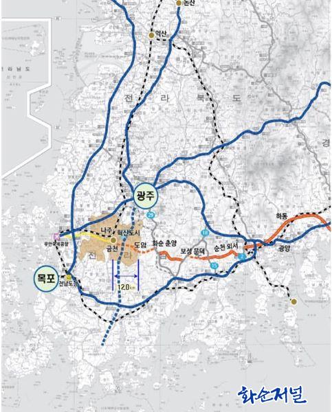 ³ªÁÖ ±Ýõ-ȼø µµ¾Ï °£ 12Km ±¸°£ÀÌ ¿¹Å¸¸¦ Åë°úÇÔÀ¸·Î½á, ³ªÁÖÇõ½Åµµ½Ã¿Í Àü³² µ¿ºÎ±ÇÀ» ÀÕ´Â ÃÖ´Ü °Å¸® ±³Åë¸ÁÀÌ ±¸ÃàµÅ, ±¹°¡Áö¿øÁö¹æµµ 58È£¼±ÀÌ ¸í½Ç»óºÎÇÑ Àü³²ÁßºÎ±Ç °í¼Óȵµ·ÎÀÇ ±â´ÉÀ» ´ÙÇÒ ¼ö ÀÖÀ» °ÍÀ¸·Î ±â´ëµÈ´Ù.
