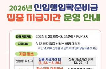 ȼø±º(±º¼ö ±¸º¹±Ô)Àº 2026Çг⵵ ÃÊ‧Áß‧°íµîÇб³ ½ÅÀÔ»ý °¡Á¤ÀÇ ±³À°ºñ ºÎ´ãÀ» ´ú°í º¸ÆíÀû ±³À°º¹Áö¸¦ ½ÇÇöÇϱâ À§ÇØ ÀÔÇÐÁغñ±ÝÀ» 3¿ù 23ÀϺÎÅÍ Áö±ÞÇÑ´Ù°í ¹àÇû´Ù. Áö±Þ ´ë»óÀº 3¿ù ÁýÁß ½Åû ±â°£ ³» ½ÅûÀ» ¿Ï·áÇϰí Áö¿øÀÌ È®Á¤µÈ ½ÅÀÔ»ýÀÌ´Ù. ½ÅûÀÚ Áß Áߺ¹ ¼ö·É È®ÀÎ µî Ãß°¡ °ËÅä°¡ ÇÊ¿äÇÑ °ü¿Ü ÇС¦