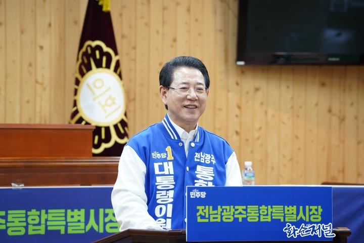 ÀçÁ¤°ú °ü·ÃÇÑ ÁúÀÇ¿¡´Â ¡°ÀÌÀç¸í ´ëÅë·É²²¼ Àü³²±¤ÁÖÅëÇÕÆ¯º°½Ã¸¦ Àû±ØÀûÀ¸·Î ¹Ð¾îÁÖÁö ¾Ê¾Ò´Ù¸é ¿©±â±îÁö ¿Ã ¼ö ¾ø¾úÀ» °ÍÀÌ´Ù. 20Á¶ÀÇ Àμ¾Æ¼ºê¸¦ ¾î¶»°Ô Ȱ¿ëÇÒ °ÍÀΰ¡ ÇÏ´Â ºÎºÐÀº Áß¾ÓÁ¤ºÎ¿Íµµ ÇùÀǰ¡ ÇÊ¿äÇÏ´Ù. ȼø±ºÀÇ ±ÕÇüÀû Áö¿ª ¹ßÀüÀ» À§ÇØ ´ë·«ÀûÀ¸·Î Á¤ÇØ µÐ ÀçÁ¤Àº ÀÖÁö¸¸, Á¤ºÎ¿ÍÀÇ ÇùÀǸ¦ ¿°µÎ¿¡ µÎ°í, ÇÊ¿äÇÏ´Ù¸é ½Ãµµ¹ÎÀÇ ¶æÀ» ¹Þµé¾î °üöÇϰڴÙ.¡±°í Çß´Ù.