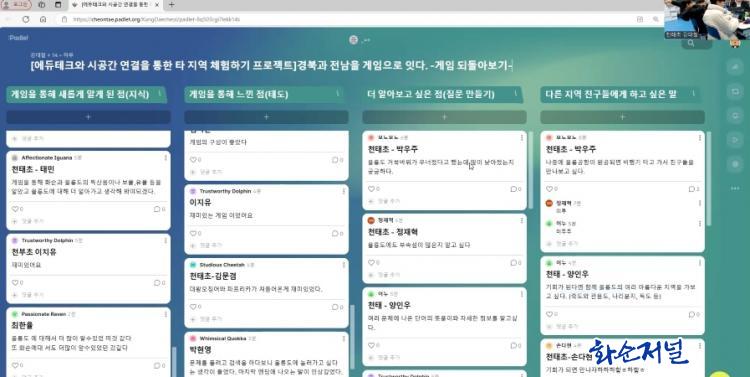 õÅÂÃʵîÇб³(Àü¶ó³²µµ ȼø±º ¼ÒÀç)¿Í õºÎÃʵîÇб³(°æ»óºÏµµ ¿ï¸ª±º ¼ÒÀç) 6Çгâ ÇлýµéÀº ¿ÃÇØ ±âÈÄ º¯È ¹®Á¦¿¡ ´ëÇÑ Àνİú ½ÇõÀ» ÁÖÁ¦·Î ½Ç½ÃµÈ 2024 ±Û·ÎÄà ¹Ì·¡±³À° ¹Ú¶÷ȸ ¹Ì·¡±³½Ç ÇÁ·ÎÁ§Æ® ¿ø°Ý È»ó ¼ö¾÷ ÀÌÈÄ ÇÔ²² ¼ö¾÷À» ÇÏ¸ç °æ»óºÏµµ¿Í Àü¶ó³²µµ Áö¿ªÀÇ ½Ã°ø°£À» ¶Ù¾î ³Ñ´Â Áö¿ª ÇлýµéÀÇ ±³·ùÇü ¼ö¾÷À» ÅëÇØ ±Û·ÎÄà ¿ª·®À» ÇÔ¾ç½Ãų ¼ö ÀÖ´Â ½Ã°£À» °¡Á³´Ù. À̹ø ¿ø°Ý È»ó ¼ö¾÷Àº °³Á¤ ±³À°°úÁ¤¿¡ ´ëºñÇÑ ÁÖÁ¦ Á᫐ ÇÁ·ÎÁ§Æ® ÇнÀ ÀÚ·á °³¹ß ¹× ±³¼ö ÇнÀ ¹æ¹ýÀ» Ž»öÇϴµ¥ ÁÁÀº ¹ßÆÇÀÌ µÉ ¼ö ÀÖ´Ù´Â Á¡¿¡¼ Àǹ̸¦ µÑ ¼ö ÀÖ´Ù.
