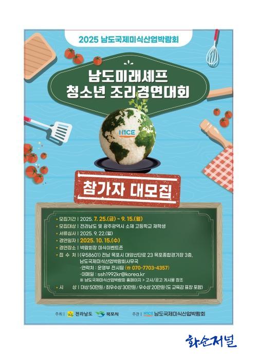 ³²µµ¹Ì·¡¼ÎÇÁ-û¼Ò³â Á¶¸®°æ¿¬Àº ¿À´Â 10¿ù 1ÀϺÎÅÍ 26ÀϱîÁö ¸ñÆ÷ ÀÏ¿ø¿¡¼ ¿¸®´Â ¡®2025 ³²µµ±¹Á¦¹Ì½Ä»ê¾÷¹Ú¶÷ȸ¡¯¿¡¼ ¡®Ã»ÃáÀÇ ¿Á¤, ³²µµÀÇ ¸ÀÀ» ´ã´Ù!¡¯¶ó´Â ½½·Î°ÇÀ¸·Î ÁøÇàµÈ´Ù.