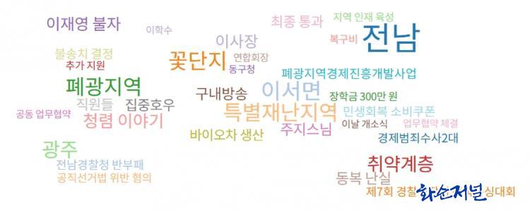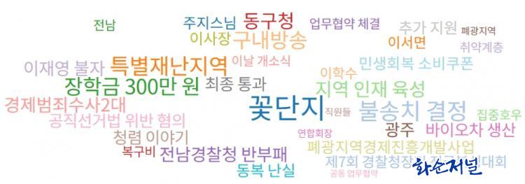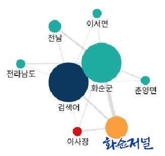 Áö³ 7¿ù ȼø ´º½º¿¡¼ ¿¬°á°ü°è¸¦ º¸¿©ÁÖ´Â ±×¸²¿¡ ³ªÅ¸³ ¿¬°ü¾î´Â 8°³´Ù. ±×Áß °Ë»ö¾î´Â (ȼø) AND ("±¸º¹±Ô"), Àι°Àº ±¸º¹±Ô, Àå¼Ò´Â ȼø±º, Àü³², Àü¶ó³²µµ. À̼¸é, Ãá¾ç¸é µîÀÌ´Ù. ÇÑÆí, ´«¿¡ ¶ç´Â Ű¿öµå´Â ÀÌ»çÀå, °øÁ÷¼±°Å¹ý, Àü±¹º¹½Ì´ëȸ, û³âÁ¤Ã¥°úÀå, ÁÖÁö½º´Ô µîÀÌ´Ù.