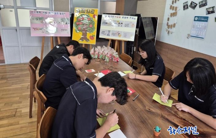 17ÀÏ µ¿º¹ÁßÇб³ 17¸í°ú ÇÔ²²¡®»ç°úÆíÁö ¾²±â¡¯½Ã°£À» ÅëÇØ ¹Ì¾ÈÇÑ ¸¶À½, °í¸¶¿î ¸¶À½À» ÀüÇÏ¸ç »ç°ú²Ù·¯¹Ì¸¦ Àü´ÞÇÏ´Â ½Ã°£À» °¡Á³´Ù. ¶ÇÇÑ »ç°ú³ª¹«¿¡ ¹Ì¾ÈÇÑ ¸¶À½, °í¸¶¿î ¸¶À½À» ½á¼ ºÙÀ̱â, ¡®¼·Î¿¡°Ô µû¶æÇÑ ¸» ÇѸ¶µð¡¯½ºÆ¼Ä¿ ºÙÀÌ±â µî ¼·ÎÀÇ °¨Á¤À» ³ª´©´Â ½Ã°£À» °¡Á³´Ù.