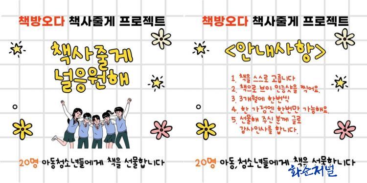 Ã¥¹æ¿À´Ù´Â ûÁÖÀÇ µ¶¸³¼Á¡ <Ã¥¹æ, ¾Ø>¿¡¼ ½ÃÀÛµÈ Ã¥ ¼±¹° ÇÁ·ÎÁ§Æ®¸¦ Á¢ÇÏ°í ¡®È¼ø¿¡¼µµ ¾ÆÀ̵鿡°Ô Ã¥À» ¼±¹°ÇØÁÖ°í ½Í´Ù¡¯´Â ¸¶À½À¸·Î ½ÃÀÛÇß´Ù. Áö³ 8¿ù 12ÀÏ Ã¥¹æÁö±â·ÎºÎÅÍ ½ÃÀÛµÈ ÀÌ ³ª´®Àº ºü¸¥ ¼Óµµ·Î Áö¿ª ÁֹεéÀÇ È£ÀÀÀ» ¾òÀ¸¸ç ´Ü ¿Èê ¸¸¿¡ 49¸¸ ¿øÀÌ ¸ð¿´°í, 10¿ù ¸» ÇöÀç ÃÑ 150¸¸ ¿ø ÀÌ»óÀÇ ÈÄ¿ø±ÝÀÌ ¸ð±Ý µÇ¾ú´Ù. ÈÄ¿øÀÚ¿¡´Â ¹Î»ýÁö¿ø±Ý Àü¾×À» ÈÄ¿øÇØ ÁֽŠ¡®¼öÀ×±Û¸®½¬¡¯ ¿øÀå´ÔºÎÅÍ ½ÃÀÛÇØ Ã¥¹æÀ» ¿À°¡¸ç µ¿ÂüÇÑ È¸¿øµé ±×¸®°í ¼Ò½ÄÀ» µè°í ±¤ÁÖ¿Í Àü±¹ °¢Áö¿¡¼ À͸íÀ¸·Î º¸³»¿Â À̵éÀÌ ÇÔ²²Çß´Ù.