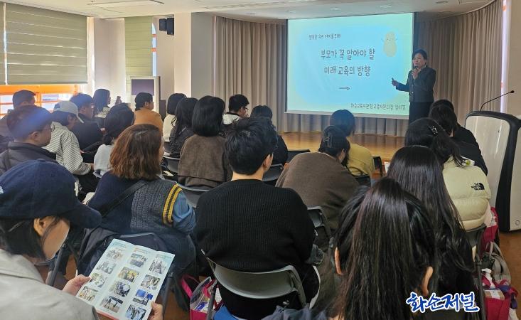 Çкθð ´ë»ó °ÀÇ¿¡¼´Â ÃʵîÇб³ 1Çг⠴ãÀÓ °æ·Â ±³»ç°¡ ³ª¼ ÃÊµî ±³À°°úÁ¤ ÀÌÇØ, Çб³»ýȰ Ư¡, °¡Á¤¿¡¼ÀÇ Áö¿ø ¹æ¹ý µîÀ» ±¸Ã¼ÀûÀ¸·Î ¾È³»Çß´Ù. À̾î Á¤¹Ì°æ ±³À°Áö¿ø°úÀåÀÌ ÇູÇÑ ¿ì¸® ¾ÆÀ̸¦ À§ÇØ ºÎ¸ð°¡ ²À ¾Ë¾Æ¾ß ÇÒ ¹Ì·¡±³À°ÀÇ ¹æÇâÀ» ÁÖÁ¦·Î Çкθð¿Í ±íÀÌ ÀÖ´Â ¼ÒÅëÀ» À̾´Ù. À̾î ȼø Áö¿ª ÀÛÀºÇб³ÀÇ °Á¡°ú ¿î¿µÇÏ´Â ¾ËÂù ±³À°°úÁ¤µµ ÇÔ²² ¾È³»Çß´Ù.