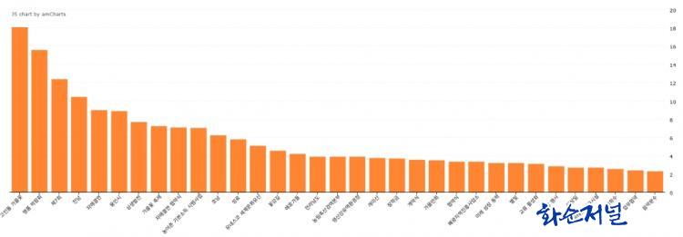 ±â»ç °Ç¼ö¿¡ ±Ù°ÅÇÑ ¸·´ë±×·¡ÇÁ¿¡¼ ÃâÇöºóµµ(ºÐ¼® ±â»ç¿¡¼ ¿¬°ü¾îÀÇ ÃâÇö Ƚ¼ö)°¡ ÀæÀº ¿¬°ü¾î¿Í ±× ºóµµ´Â ³»¸²Â÷¼øÀ¸·Î °¢°¢ Àü³² 142ȸ, ÀڸŰῬ 80ȸ, ²É°±æ 78ȸ, °¡À»²É ÃàÁ¦ 65ȸ, °íÀε¹ °¡À»²É 56ȸ, °³¹Ì»ê 51ȸ µîÀÌ´Ù. ¿¬°ü¾î 33°³ÀÇ ÃÑ ÃâÇöºóµµ´Â 912ȸ´Ù.