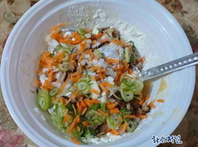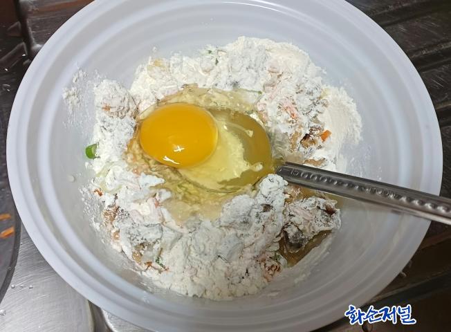 3. ¹ÙÁö¶ô »ì¿¡ ûÁÖ¸¦ ³Ö°í, ¹Ð°¡·ç 10gÀ» ³Ö¾î ¼¯¾î ÁØ´Ù.