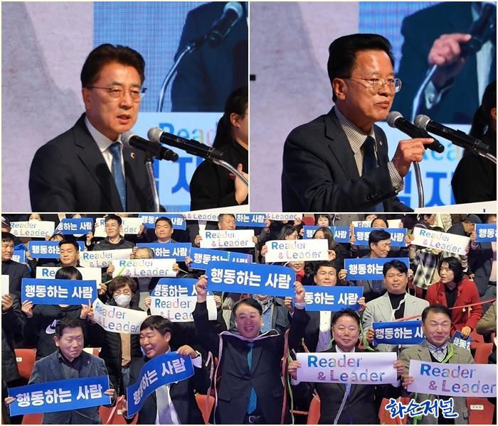 ![]() ±èÅÂ±Õ Àü³²µµÀÇȸ ÀÇÀå°ú ±èº´¿ì ÀÓÁö¶ô µµÀÇ¿ø ÈÄ¿øÈ¸ÀåÀÌ Ãà»ç¸¦ Çϰí ÀÖ´Ù(À§ÂÊ, ÁÂ, ¿ì)