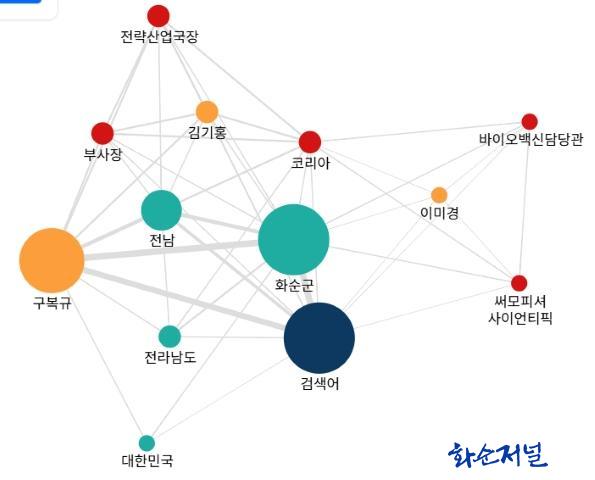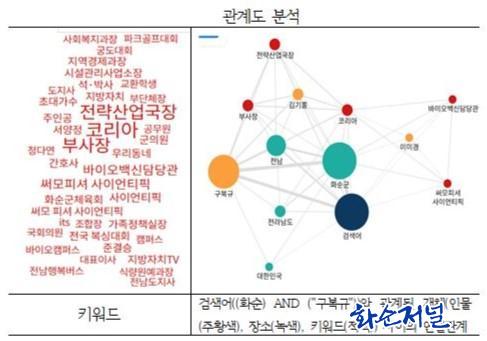 Áö³ 11¿ù ȼø ´º½º¿¡¼ ¿¬°á°ü°è¸¦ º¸¿©ÁÖ´Â ±×¸²¿¡ ³ªÅ¸³ ¿¬°ü¾î´Â 13°³´Ù. ±×Áß °Ë»ö¾î´Â (ȼø) AND ("±¸º¹±Ô"), Àι°Àº ±¸º¹±Ô, ±è±âÈ«, À̹̰æ, Àå¼Ò´Â ȼø±º, Àü³², Àü¶ó³²µµ, ´ëÇѹα¹ µîÀÌ´Ù. ±â°üÀº ¾ø´Ù. ÇÑÆí, ´«¿¡ ¶ç´Â Ű¿öµå´Â ÄÚ¸®¾Æ, Àü·«»ê¾÷±¹Àå, ºÎ»çÀå, ¹ÙÀÌ¿À¹é½Å´ã´ç°ü, ½á¸ðÇǼŠ»çÀ̾ðƼÇÈ µîÀÌ´Ù.
