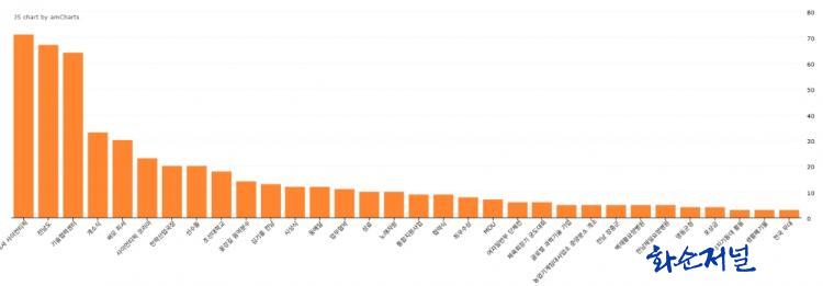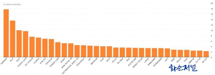 ±â»ç °Ç¼ö¿¡ ±Ù°ÅÇÑ ¸·´ë±×·¡ÇÁ¿¡¼ ÃâÇöºóµµ(ºÐ¼® ±â»ç¿¡¼ ¿¬°ü¾îÀÇ ÃâÇö Ƚ¼ö)°¡ ÀæÀº ¿¬°ü¾î¿Í ±× ºóµµ´Â ³»¸²Â÷¼øÀ¸·Î °¢°¢ ÇǼŠ»çÀ̾ðƼÇÈ 71ȸ, Àü³²µµ 67ȸ, ±â¼úÇù·Â¼¾´õ 64ȸ, °³¼Ò½Ä 33ȸ, ½á¸ð ÇǼŠ30ȸ µîÀÌ´Ù. ¿¬°ü¾î 32°³ÀÇ ÃÑ ÃâÇöºóµµ´Â 515ȸ´Ù.