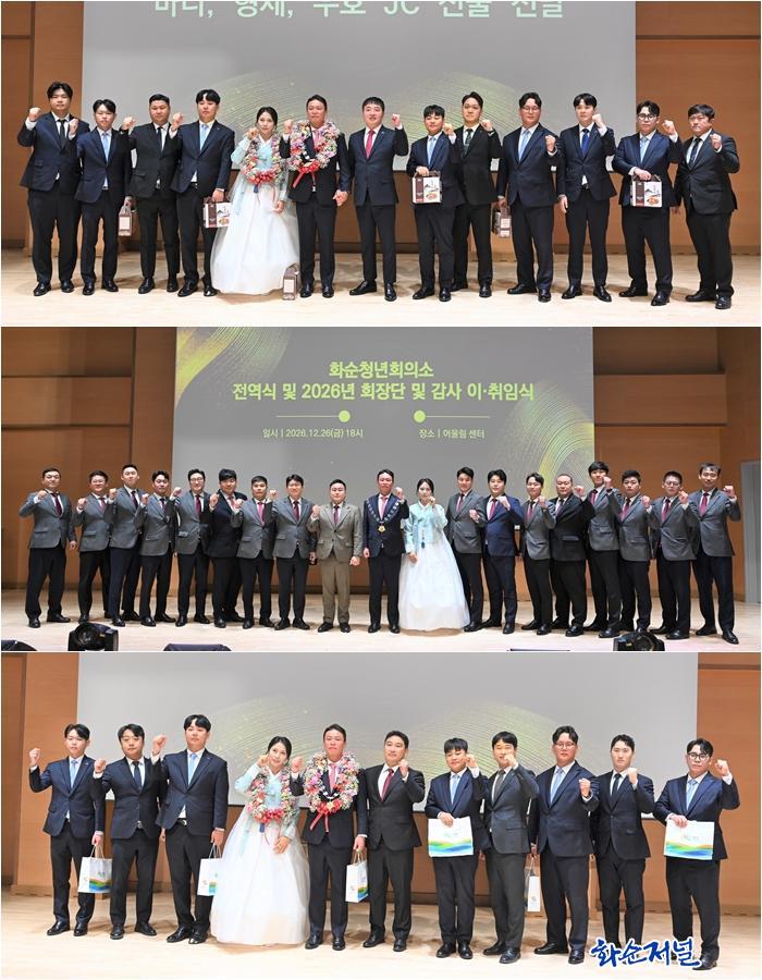 ȼøÃ»³âȸÀǼÒ(ÀÌÇÏ È¼øJC, ½ÅÀÓȸÀå ·ù¿ëÇö)°¡ 26ÀÏ È¼ø¾î¿ï¸²¼¾ÅÍ 2Ãþ ´ë°´ç¿¡¼ 2026³âµµ Àü¿ª½Ä ¹× ȸÀå´Ü, °¨»ç ÀÌ¡¤ÃëÀÓ½ÄÀ» ¼ºÈ²¸®¿¡ °³ÃÖÇß´Ù. À̳¯ ±¸ÈñÀç ȸÀåÀÌ ÀÌÀÓÇÏ°í ·ù¿ëÇö ȸÀåÀÌ ÃëÀÓÇß´Ù.