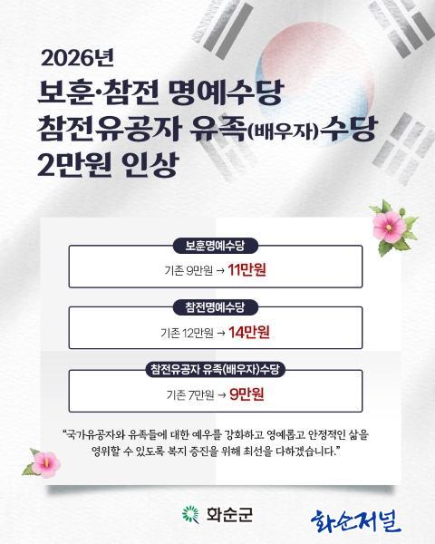 À̹ø Àλó ´ë»óÀº ¡ãº¸ÈƼö´ç ¡ãÂüÀü¸í¿¹¼ö´ç ¡ãÂüÀüÀ¯°øÀÚ À¯Á·(¹è¿ìÀÚ)¼ö´çÀ¸·Î, °¢°¢ ¿ù 2¸¸ ¿ø¾¿ ÀλóµÈ´Ù. ÀÌ¿¡ µû¶ó º¸ÈƼö´çÀº ±âÁ¸ ¿ù 7¸¸ ¿ø¿¡¼ 9¸¸ ¿øÀ¸·Î, ÂüÀü¸í¿¹¼ö´çÀº ¿ù 10¸¸ ¿ø¿¡¼ 12¸¸ ¿øÀ¸·Î, ÂüÀüÀ¯°øÀÚ À¯Á·(¹è¿ìÀÚ)¼ö´çÀº ¿ù 5¸¸ ¿ø¿¡¼ 7¸¸ ¿øÀ¸·Î Á¶Á¤µÈ´Ù.