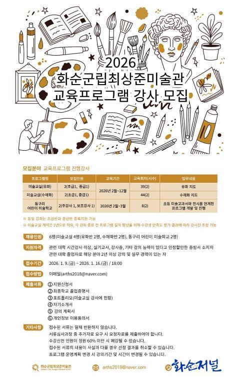 ¸ðÁýÀοøÀº ¹Ì¼ú±³½Ç À¯È¹Ý °»ç 2¸í(ÃÊ±Þ¹Ý 1¸í, Áß±Þ¹Ý 1¸í)°ú ¼öÃ¤È °»ç 2¸í(ÃÊ±Þ¹Ý 1¸í, Áß±Þ¹Ý 1¸í), ±×¸®°í µ¿±¸¸® ¾î¸°ÀÌ ¹Ì¼úÇб³ 2¸í(ÁÖ°»ç 1¸í, º¸Á¶°»ç 1¸í)À¸·Î ÃÑ 6¸íÀÌ´Ù.