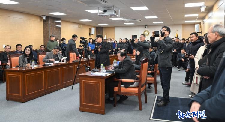![]() ±âÀÚȸ°ß Âü¼®ÀÚµéÀÌ ¹®ÇàÁÖ Àü µµÀÇ¿ø¿¡°Ô ÁúÀÇÇϰí ÀÖ´Ù. |