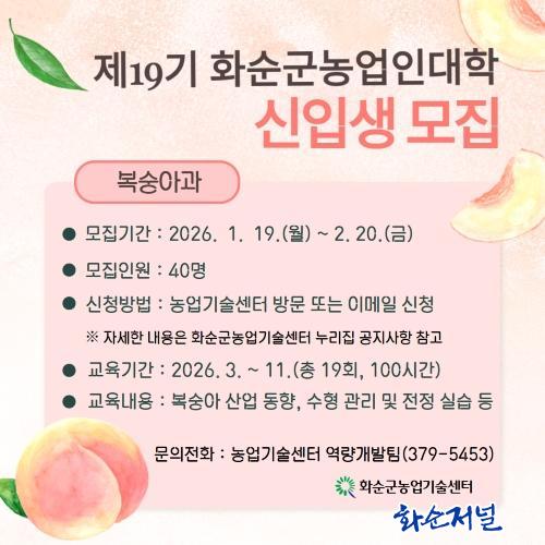 ȼø±º³ó¾÷ÀδëÇÐÀº Áö¿ª Æ¯È ÀÛ¸ñ Áß½ÉÀÇ Ã¼°èÀûÀÎ ±³À°À» ÅëÇØ Àü¹® ³ó¾÷ °æ¿µÀÎÀ» À°¼ºÇÏ´Â µ¥ ÃÊÁ¡À» µÎ°í ÀÖÀ¸¸ç, ¿ÃÇØ´Â º¹¼þ¾Æ »ê¾÷ÀÇ °æÀï·Â °È¸¦ ¸ñÇ¥·Î º¹¼þ¾Æ ´ÜÀÏ Çаú¸¦ °³¼³ÇÏ¿© ÃÑ 40¸íÀÇ ±³À°»ýÀ» ¸ðÁýÇÒ ¿¹Á¤ÀÌ´Ù.