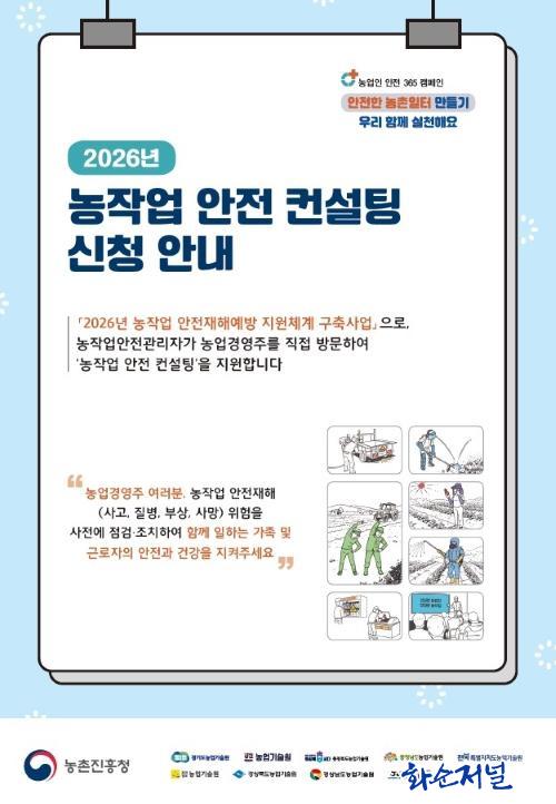 À̹ø »ç¾÷Àº ³ó¾÷ ºÐ¾ß Áß´ëÀçÇØ ¿¹¹æ°ú ¾ÈÀüÇÑ ³óÀÛ¾÷ ȯ°æ Á¶¼ºÀ» À§ÇØ ¸¶·ÃµÆ´Ù. ³óÀÛ¾÷ ¾ÈÀü°ü¸®ÀÚ°¡ ³ó¾÷°æ¿µÁÖ¸¦ Á÷Á¢ ¹æ¹®ÇØ ³óÀÛ¾÷ ÇöÀåÀÇ À§Çè ¿äÀÎÀ» Áø´ÜÇÏ°í ³ó°¡ ¿©°Ç¿¡ ¸Â´Â ¸ÂÃãÇü ¾ÈÀü°ü¸® ÄÁ¼³ÆÃÀ» Á¦°øÇÑ´Ù.