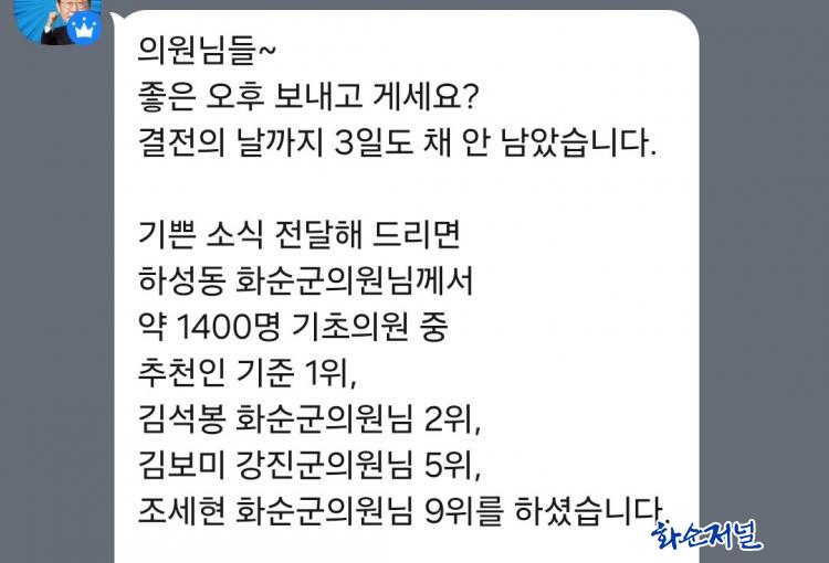 ![]() ¡®ÀüÈÇϼ¼¡¯ Ä·ÆäÀο¡¼ Çϼºµ¿ ÀÇ¿øÀÌ Àü±¹ 1,400¸í ±âÃÊÀÇ¿ø Áß È«º¸ ½ÇÀû 1À§¸¦ ´Þ¼ºÇßÀ½À» ¾Ë¸®´Â ¸Þ½ÃÁö. |