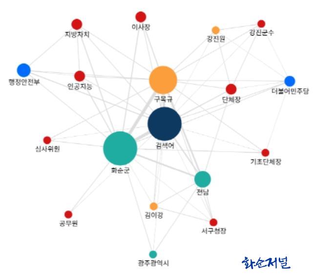 Áö³ 2¿ù ȼø ´º½º¿¡¼ ¿¬°á°ü°è¸¦ º¸¿©ÁÖ´Â ±×¸²¿¡ ³ªÅ¸³ ¿¬°ü¾î´Â 18°³´Ù. ±×Áß °Ë»ö¾î´Â (ȼø) AND ("±¸º¹±Ô"), Àι°Àº ±¸º¹±Ô, ±èÀ̰, °Áø¿ø µîÀ̰í, Àå¼Ò´Â ȼø±º, Àü³², ±¤ÁÖ±¤¿ª½Ã µîÀÌ´Ù. ±â°üÀº ÇàÁ¤¾ÈÀüºÎ, ´õºÒ¾î¹ÎÁÖ´ç µîÀÌ´Ù. ÇÑÆí, ´«¿¡ ¶ç´Â Ű¿öµå´Â Áö¹æÀÚÄ¡, ÀÌ»çÀå, ÀΰøÁö´É, ´ÜüÀå µîÀÌ´Ù.