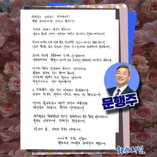 ¹®ÇàÁÖ È帴 ±º¹ÎÀÇ ÇÑ Ç¥°¡ Èñ¸ÁÀÇ »õº®À» ±ú¿ì´Â ù ÇÞ»ì°ú °°´Ù°í ºñÀ¯Çϸç, ¡°±× °£ÀýÇÔÀ» °áÄÚ ¿Ü¸éÇÏÁö ¾Ê°Ú´Ù. °æ¼± ÅõÇ¥·Î û·ÅÇÑ È¼øÀ» ¿¾î°¥ ¡®¹®ÇàÁÖ¡¯¶ó´Â ²ÉÀ» Ȱ¦ ÇÇ¿ö ´Þ¶ó.¡±°í Çß´Ù.