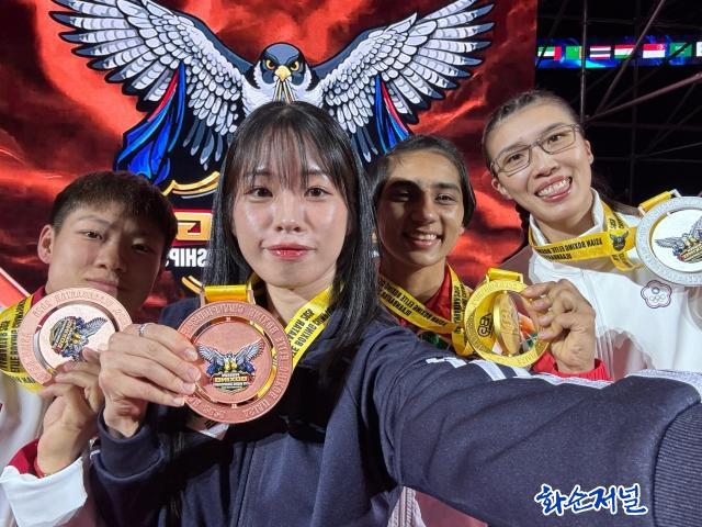 ÀÓ¾ÖÁö ¼±¼ö´Â ¿©ÀÚÀϹݺΠ54kg±Þ 8°Àü¿¡¼ ÀϺ»ÀÇ Ã÷Ű¹Ì ³ª¹ÌŰ ¼±¼ö¸¦ ²ª°í 4°¿¡ ÁøÃâÇß´Ù. Áذá½Â¿¡¼´Â ÀεµÀÇ ÇÁ¸®Æ¼ ÆÄ¿Í¸£ ¼±¼ö¿Í ¸ÂºÙ¾î ¼±ÀüÇßÀ¸³ª 0 ´ë 5·Î ¾Æ½±°Ô ÆÐÇØ ÃÖÁ¾ 3À§¿¡ ¿À¸£¸ç µ¿¸Þ´ÞÀ» ¸ñ¿¡ °É¾ú´Ù.