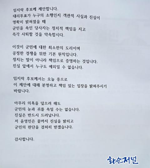 ´õºÒ¾î¹ÎÁÖ´ç ȼø±º¼ö ¿¹ºñÈĺ¸ À±¿µ¹ÎÀÌ 17ÀÏ ¼±°Å»ç¹«½Ç¿¡¼ ±âÀÚȸ°ßÀ» ¿°í ÃÖ±Ù ºÒ°ÅÁø ´ë¸®ÅõÇ¥ ÀÇȤ°ú °ü·ÃÇØ °°æ ´ëÀÀ ÀÔÀåÀ» ¹àÇû´Ù.